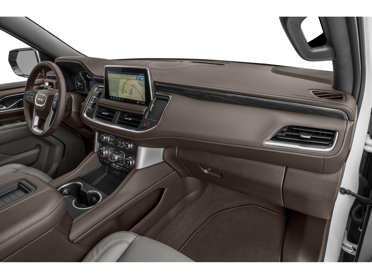 This 2021 GMC Yukon comes nicely equipped with License Plate Front Mounting Package, Preferred Equipment Group 4SA (12-Way Power Seat Adjusters, 2 Presets For Power Driver Seat, Bose 9-Speaker Stereo Audio System Feature, Bright Chrome Bodyside Moldings, Bright Front & Rear Door Sill Plates, Chrome Door Handles w/Body-Color Strip, Hands-Free Power Programmable Rear Liftgate, Heated & Ventilated Driver & Front Passenger Seats, Heated Driver & Front Passenger Seats, Inside Rear-View Auto-Dimming Mirror, Safety Alert Seat, and Universal Home Remote), Rear Media & Nav Package (HD Radio, Radio: AM/FM/SiriusXM w/Navigation, Rear Seat Media System, and SiriusXM w/360L), SLT Luxury Package (2 Presets For Outside Rearview Mirrors, 3rd Row 60/40 Power-Folding Split-Bench Seat, HD Surround Vision, Heated 2nd Row Outboard Position Seats, Heated Automatic Steering Wheel, Outside Heated Power-Adjustable Mirrors, Power Release 2nd Row 60/40 Split-Folding Bench Seat, Power Tilt & Telescopic Steering Column, and Rear Pedestrian Alert), SLT Premium Package (Dual-Pane Panoramic Power Sunroof), 3.23 Rear Axle Ratio, 3rd row seats: split-bench, 4-Wheel Disc Brakes, 9 Speakers, ABS brakes, Air Conditioning, Alloy wheels, AM/FM radio: SiriusXM with 360L, Apple CarPlay/Android Auto, Auto High-beam Headlights, Auto-dimming Rear-View mirror, Automatic Emergency Braking, Automatic temperature control, Bodyside moldings, Brake assist, Bumpers: body-color, Compass, Delay-off headlights, Driver door bin, Driver vanity mirror, Dual front impact airbags, Dual front side impact airbags, Electronic Stability Control, Emergency communication system: OnStar and GMC connected services capable, Following Distance Indicator, Forward Collision Alert, Four wheel independent suspension, Front & Rear Park Assist, Front anti-roll bar, Front Bucket Seats, Front Center Armrest, Front dual zone A/C, Front fog lights, Front Pedestrian Braking, Front reading lights, Fully automatic headlights, Garage door transmitter, Heated door mirrors, Heated front seats, Illuminated entry, IntelliBeam Automatic High Beam On/Off, Lane Change Alert w/Side Blind Zone Alert, Lane Keep Assist w/Lane Departure Warning, Leather steering wheel, Low tire pressure warning, Memory seat, Occupant sensing airbag, Outside temperature display, Overhead airbag, Overhead console, Panic alarm, Passenger door bin, Passenger vanity mirror, Perforated Leather Seating Surfaces, Power door mirrors, Power driver seat, Power Liftgate, Power passenger seat, Power Release 2nd Row Bucket Seats, Power steering, Power windows, Premium Smooth Ride Suspension, Radio: AM/FM/SiriusXM, Rain sensing wipers, Rear air conditioning, Rear anti-roll bar, Rear Cross Traffic Alert, Rear reading lights, Rear seat center armrest, Rear window defroster, Rear window wiper, Remote keyless entry, Roof rack: rails only, Security system, Speed control, Speed-sensing steering, Split folding rear seat, Spoiler, Steering wheel mounted audio controls, Tachometer, Telescoping steering wheel, Tilt steering wheel, Traction control, Trip computer, Variably intermittent wipers, Ventilated front seats, Voltmeter, Wheel Locks, and Wheels: 20 x 9 6-Spoke Polished Aluminum.
