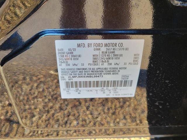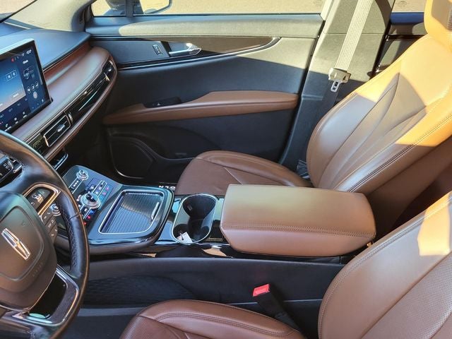 This 2022 Lincoln Nautilus comes nicely equipped with Equipment Group 200A, 10 Speakers, 3.80 Axle Ratio, 4-Wheel Disc Brakes, ABS brakes, Air Conditioning, Alexa Built-In, Alloy wheels, AM/FM radio: SiriusXM with 360L, Auto High-beam Headlights, Auto tilt-away steering wheel, Auto-dimming door mirrors, Auto-dimming Rear-View mirror, Automatic temperature control, Brake assist, Bumpers: body-color, Compass, Delay-off headlights, Driver door bin, Driver vanity mirror, Dual front impact airbags, Dual front side impact airbags, Electronic Stability Control, Emergency communication system: 911 Assist, Four wheel independent suspension, Front anti-roll bar, Front Bucket Seats, Front Center Armrest w/Storage, Front dual zone A/C, Front License Plate Bracket, Front reading lights, Fully automatic headlights, Garage door transmitter: HomeLink, Heated door mirrors, Heated front seats, Heated rear seats, Heated steering wheel, Illuminated entry, Knee airbag, Leather steering wheel, Low tire pressure warning, Memory seat, Navigation System, Occupant sensing airbag, Outside temperature display, Overhead airbag, Overhead console, Panic alarm, Passenger door bin, Passenger vanity mirror, Power door mirrors, Power driver seat, Power Liftgate, Power moonroof: Panoramic Vista Roof, Power passenger seat, Power steering, Power windows, Prem Lthr-Trimmed Heated/Ventilated Captain Seats, Radio data system, Radio: AM/FM/HD Audio System, Rain sensing wipers, Rear anti-roll bar, Rear reading lights, Rear seat center armrest, Rear window defroster, Rear window wiper, Remote keyless entry, Security system, Speed control, Speed-sensing steering, Speed-Sensitive Wipers, Split folding rear seat, Spoiler, Steering wheel memory, Steering wheel mounted A/C controls, Steering wheel mounted audio controls, SYNC 4 w/Enhanced Voice Recognition, Tachometer, Telescoping steering wheel, Tilt steering wheel, Traction control, Trip computer, Turn signal indicator mirrors, Variably intermittent wipers, Ventilated front seats, and Wheels: 18 Premium Painted Bright Machined Alum.